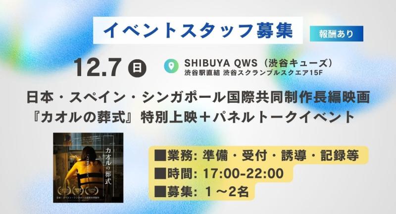 【アルバイト募集】12/7(日)渋谷QWS|映画特別上映トークイベント 運営スタッフ
