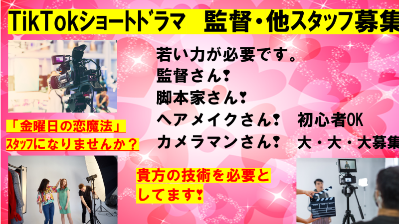 若い力を貸してください。TikTokショートドラマ監督、スタッフ募集