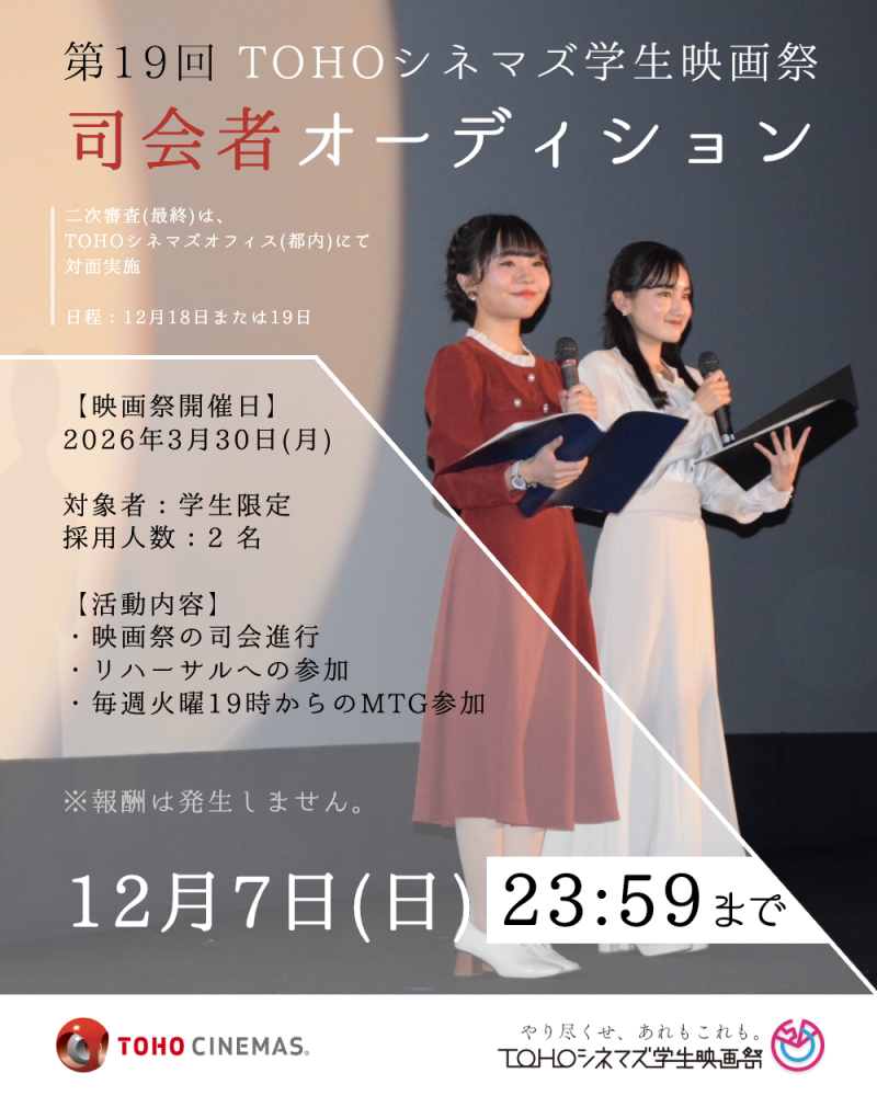 TOHOシネマズ学生映画祭・司会者募集!【2025年12月7日〆切】